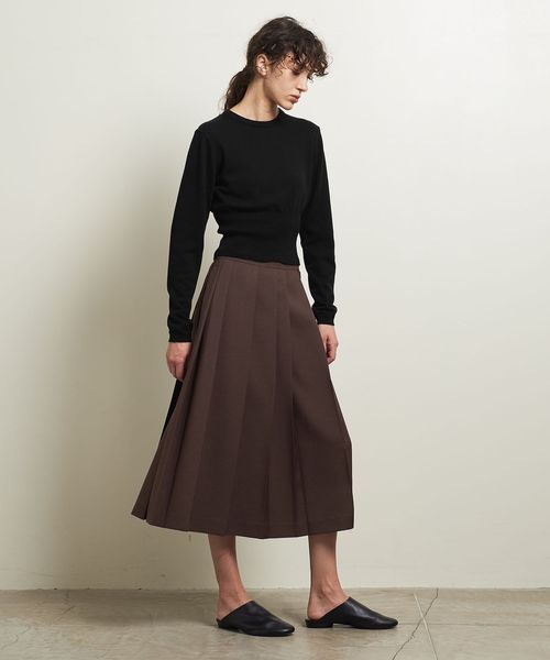 プリーツスカートでコーディネートした正統派なスタイルも鮮度アップを叶えます。