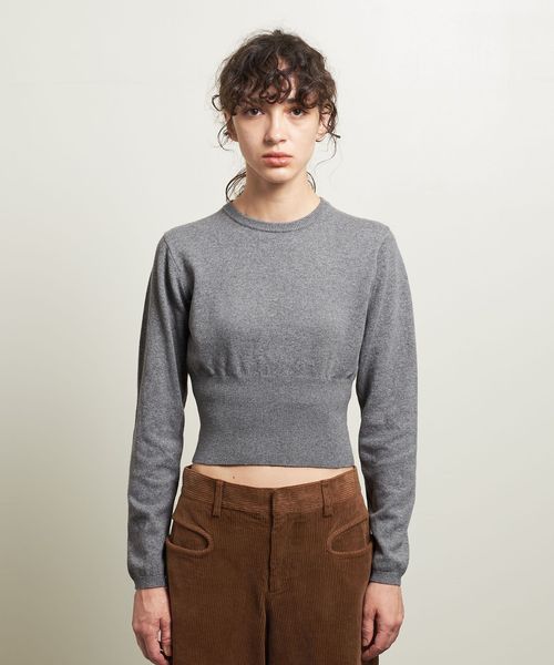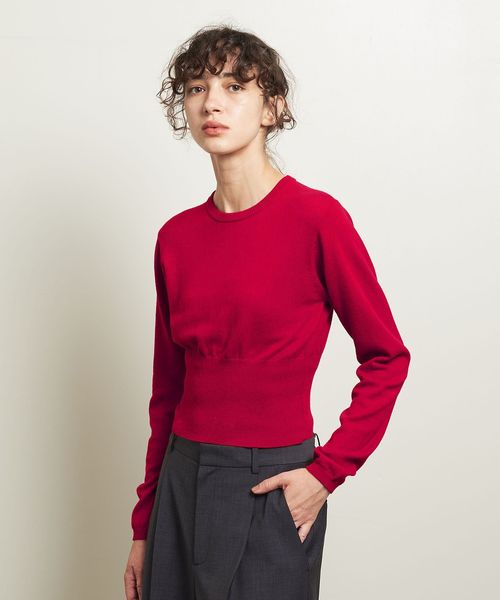 コンパクトなサイズ感がトレンドライクのショート丈プルオーバーニット。