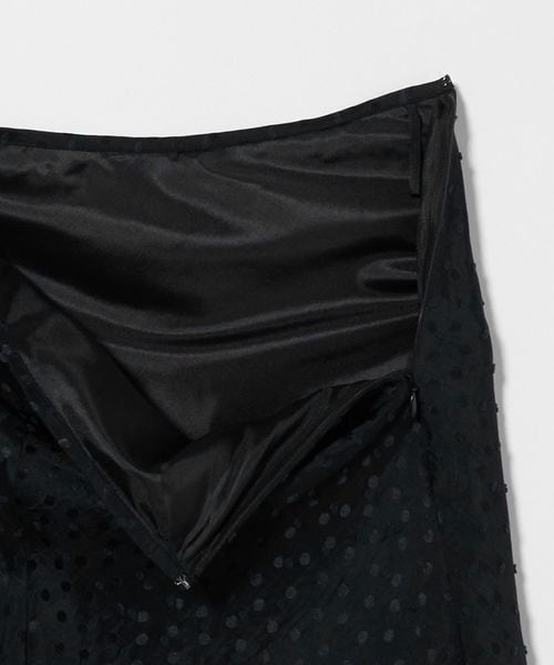 ポップなドット柄と光沢感のあるサテンを組み合わせたジャガード素材が斬新なデザインのスカート。