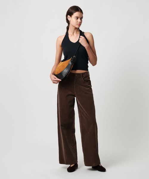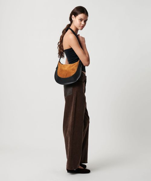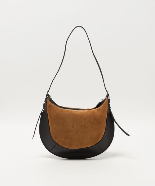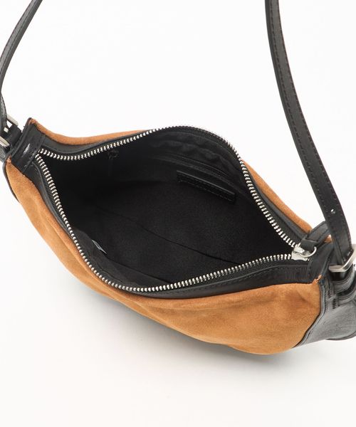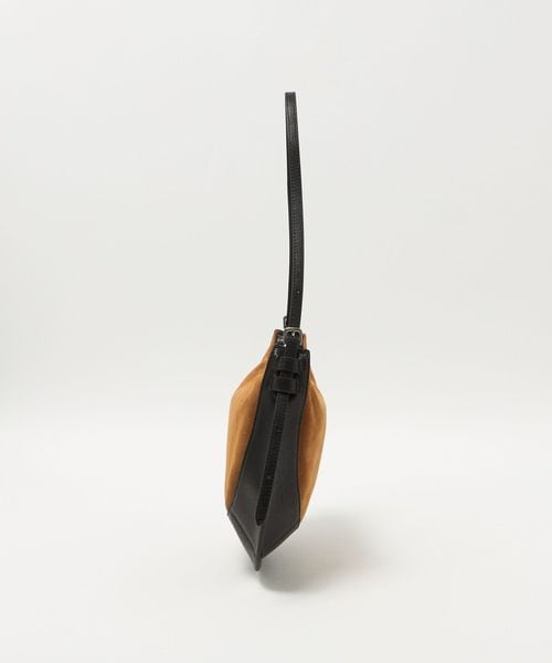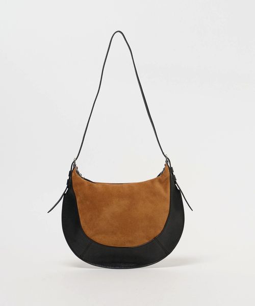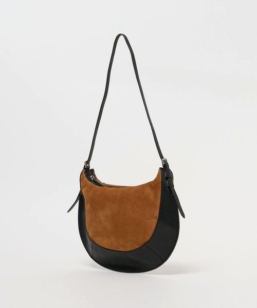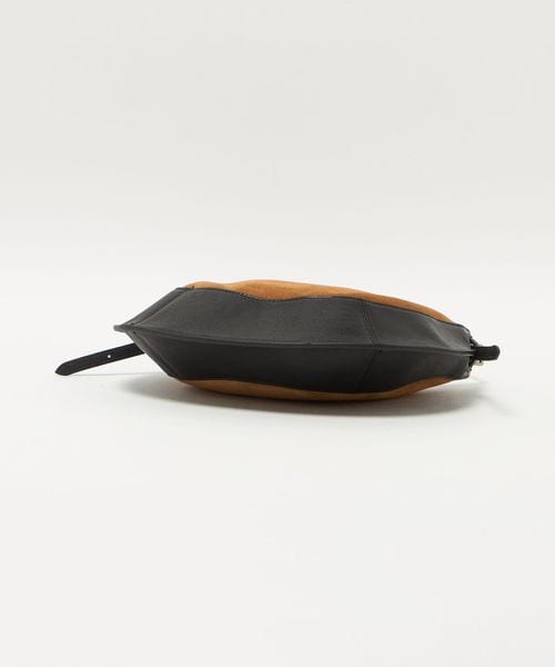 スエード×レザーをドッキングしたデザインがインパクトのあるバッグ。