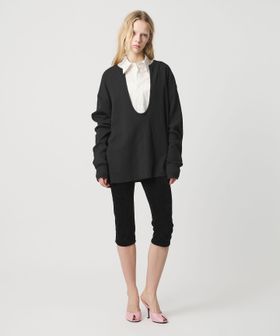 ネック部分にはホックを施し、襟元を閉めコンパクトシルエットで着たりとアレンジが可能。