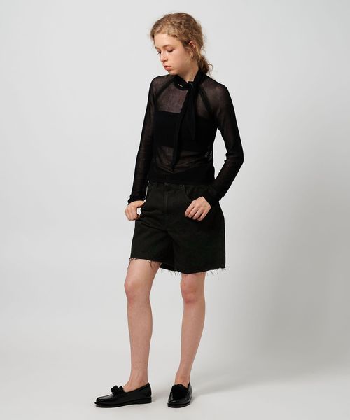 <ATTISESSION>ハーフ デニム パンツ/ブラック