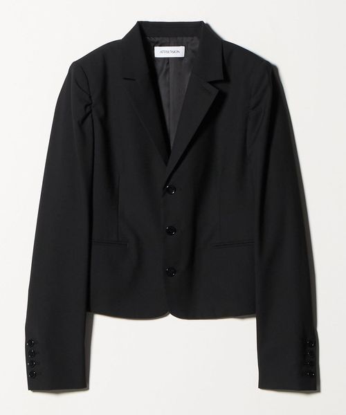 小さめの襟&袖山の一部にギャザーデイテールを施し、コンパクトなサイジングですっきりと仕上げたこだわりの一着です。