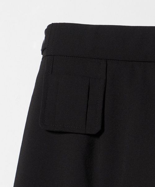 フロントに細めの4タックとコインポケット、バックにはフラップ付き玉縁や吊りポケットを施して、ウエスト周りに華やかさをプラスしました。
