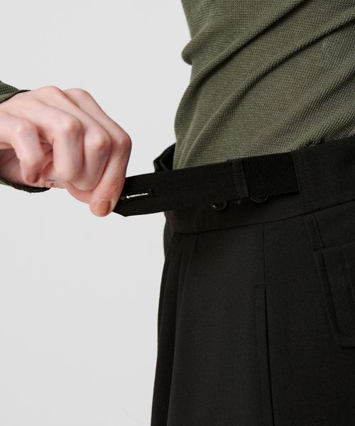 こだわった腰回りのディテールとワイドなシルエットで魅了するドレッシーなパンツ。