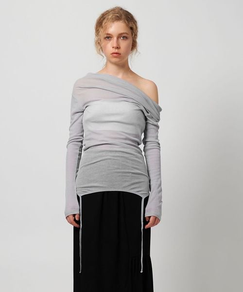上下どちらでも着用が叶い、袖をウエスト部分で結びキャミソールとしてや、裾をくしゅっとニュアンス感を出しロングスリーブのトップスとしてもお召しいただけます。