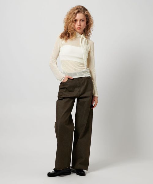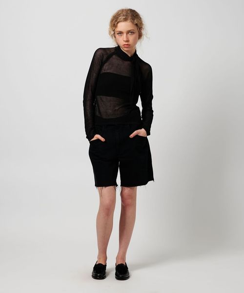 ワイドシルエットのスラックスやデニムパンツ、ショーツと合わせて、メリハリのある着こなしがおすすめです。