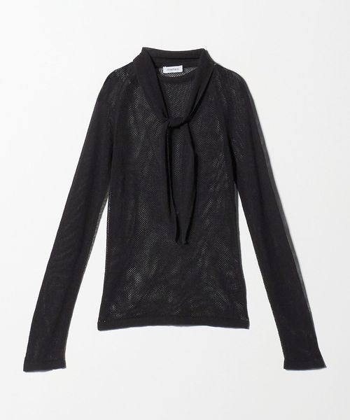 首元にスカーフのようなタイを施したユニークなデザインのプルオーバートップス。