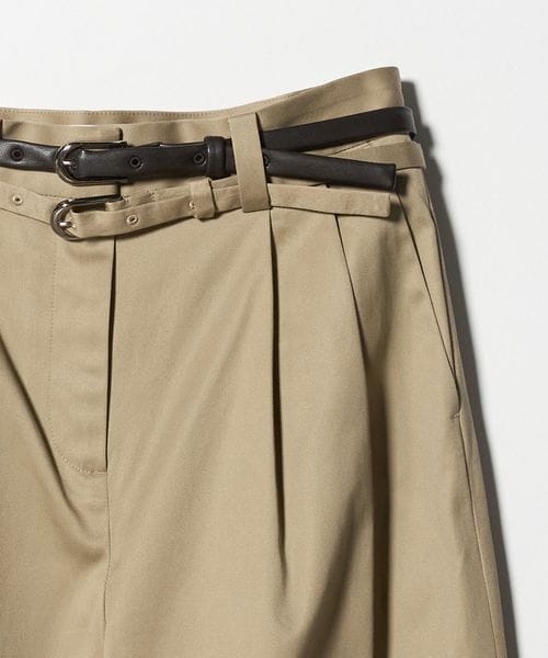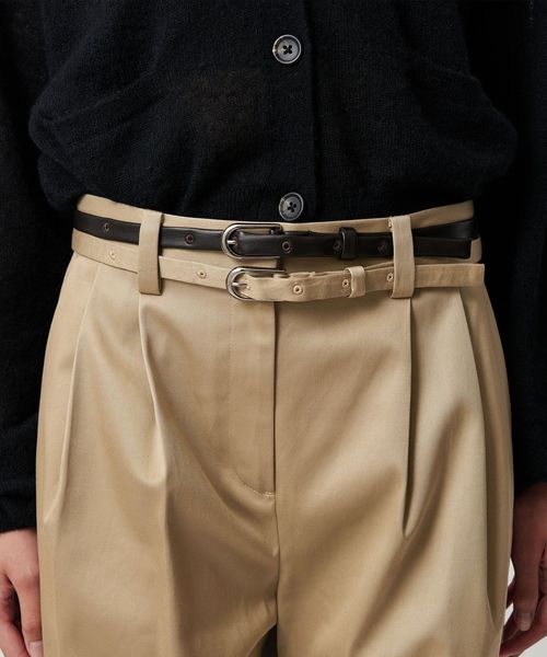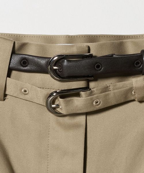 ナローベルトの重ね付けがデザインがポイントのストレートパンツ。