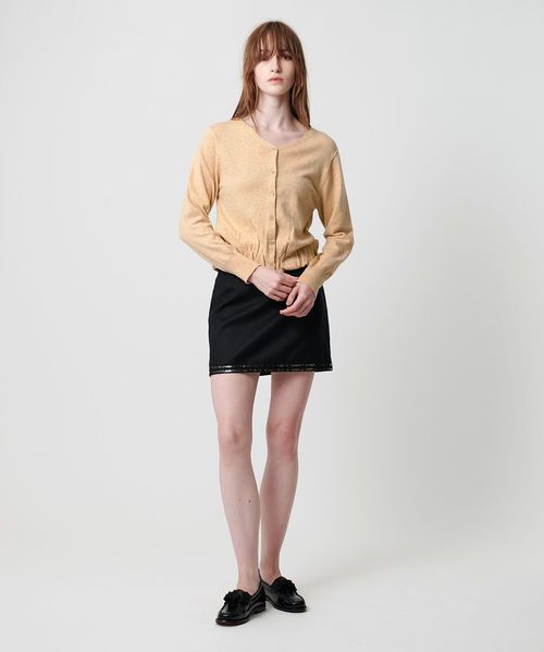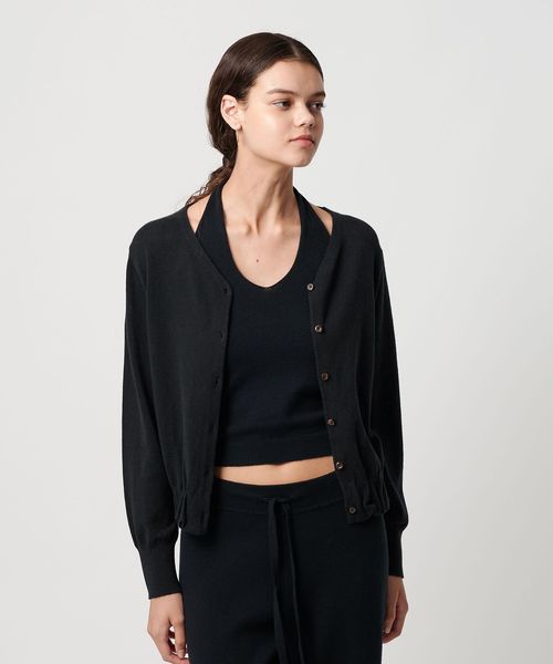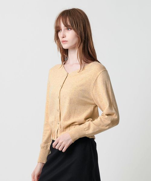 シンプルながらギャザーデザインがアクセントを添えるカーディガン