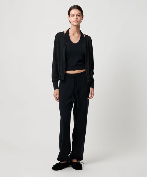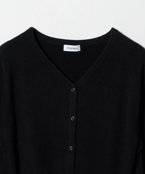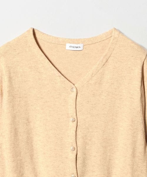 温かみのあるニット素材とVネックが女性らしさを引き立てるカーディガン。