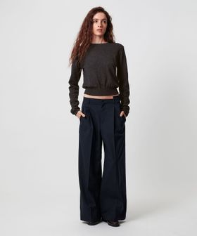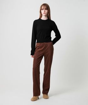 デニムやワイドパンツと合わせてメリハリのある着こなしはもちろん、細めのパンツとミニマムにまとめるのもトレンド感がありおすすめです。