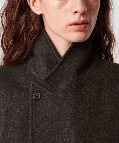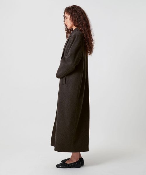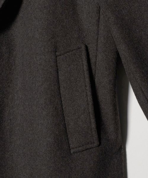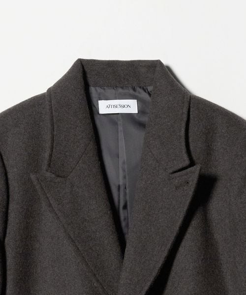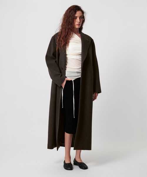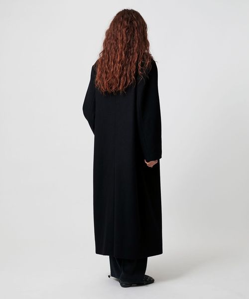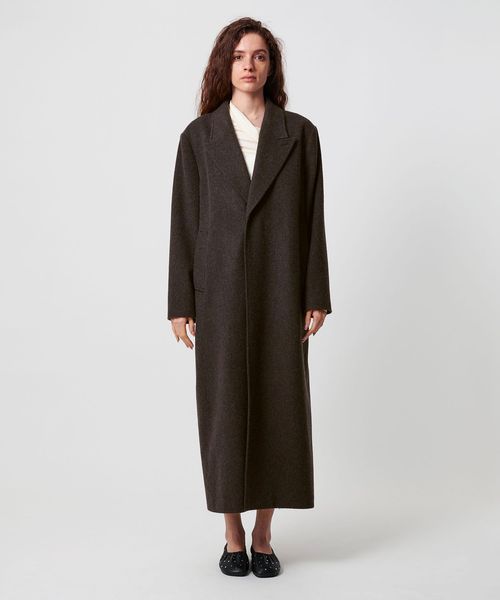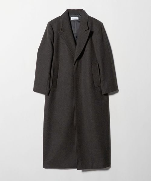 ピークドラペルジャケットのデザインを採用したマニッシュなロングコート。