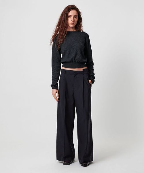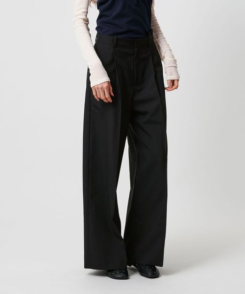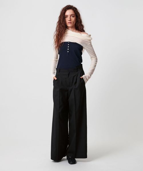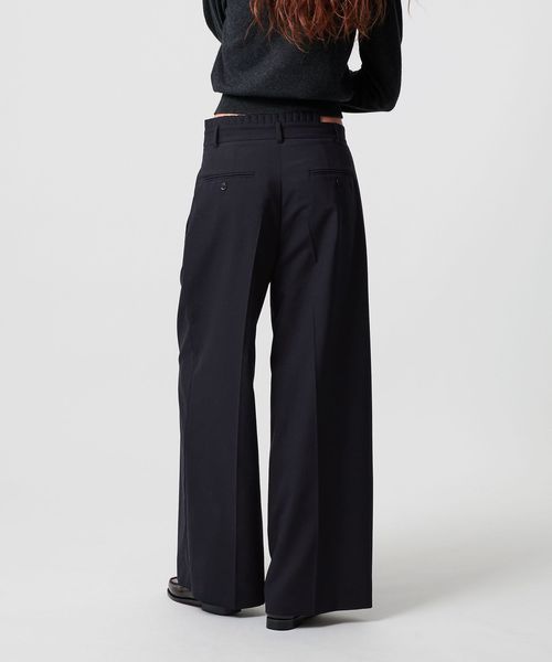 シンプルながらウエストディテールで魅了するワイドパンツ