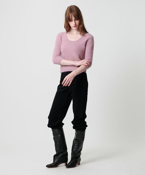 適度な厚みで仕上げごわつきがなく、アウターを選ばずに着用できるのがポイント。