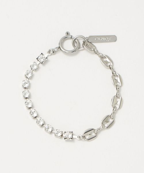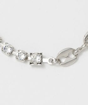 クリスタル×コーヒービーンモチーフのコンビチェーンデザインが印象的な<JUSTINE QLENQUET>のブレスレット。