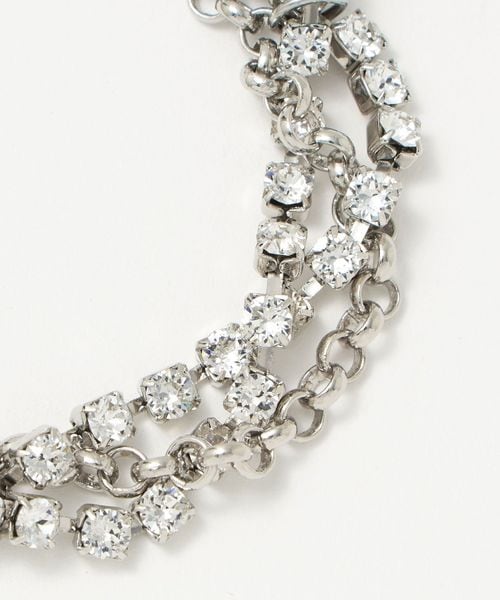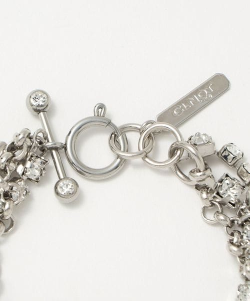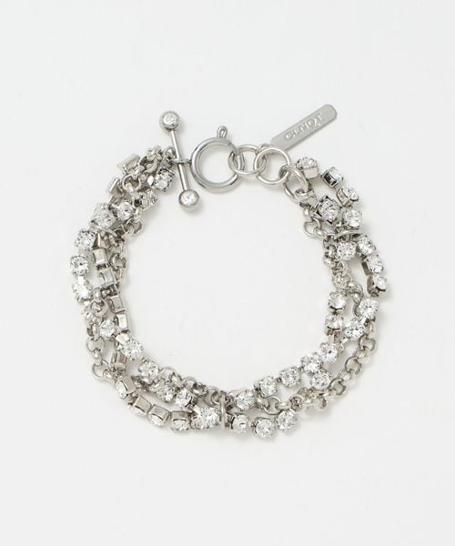 クリスタル&ティアードリンクチェーンのレイヤードデザインが魅力的な<JUSTINE QLENQUET>のブレスレット。