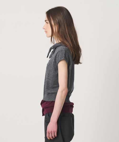 ミニマルなベースに構築的なディテールを加え、シンプルでありながら印象的な佇まいのカップスリーブニット。