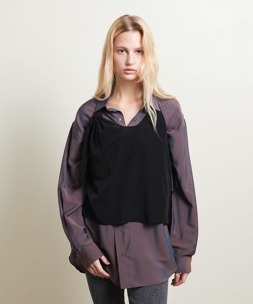 一枚着でヘルシーに着こなすのはもちろん、シャツやTシャツなどとレイヤードしてビスチェ感覚で取り入れるのもおすすめです。