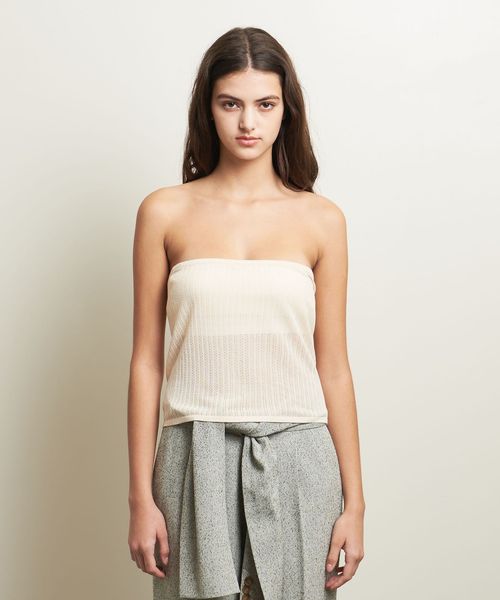 ベアトップは一枚ではもちろん、ビスチェ風に着たり、スカートにようにボトムとレイヤードしたスタイルを楽しむのも◎。
