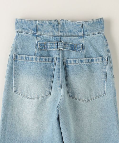 ハイウエストでシャープ見えが叶う斜めの切り替えしがポイントのデニムパンツ。