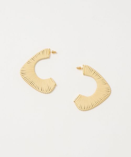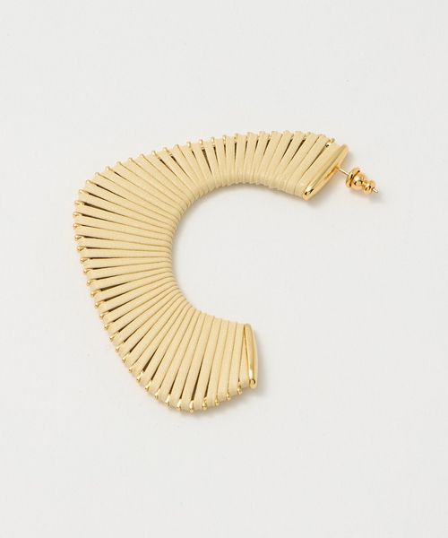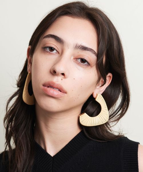 フープのようなユニークなデザインが顔回りを華やかにする<CREMAISH>のピアス。