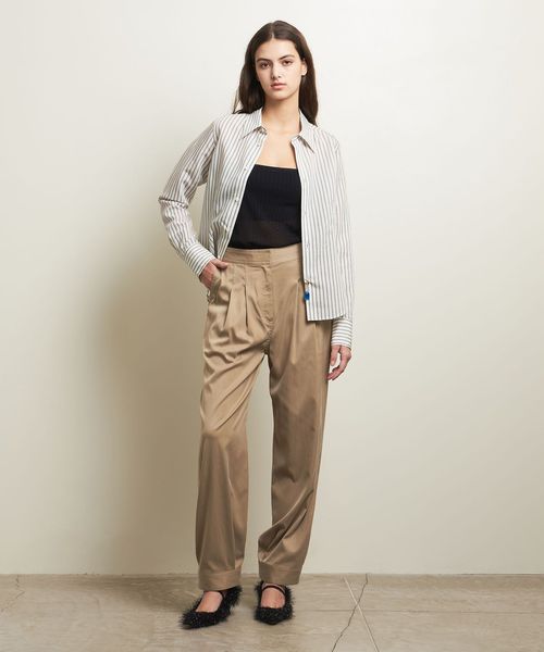 ウエストシェイプですっきりとしたサイジングなので、ボリュームのあるワイドボトムと合わせるのがおすすめです。