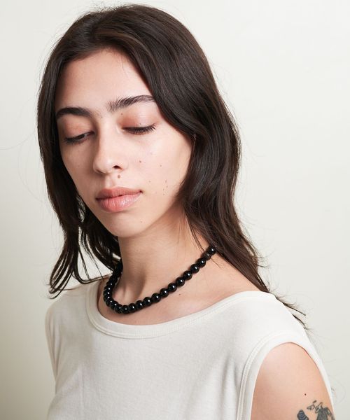 モードなムードを纏う、オニキスビーズのショートネックレス。