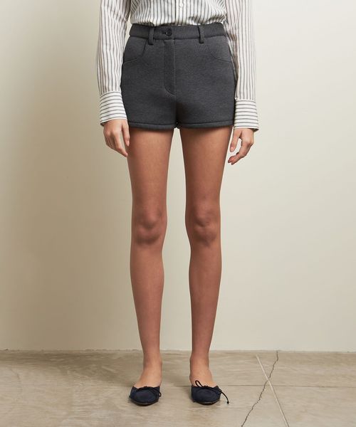 ふっくらとしたボンディング素材がバルキーな表情をもたらすマイクロミニ丈のショートパンツ。