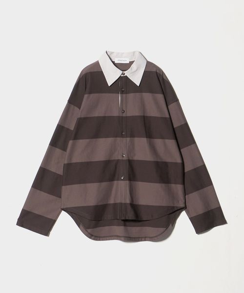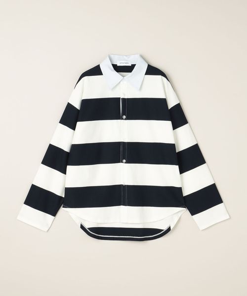 クラシックなシャツのデザインをベースに、カットソー素材を組み合わせたラグビーシャツ。
