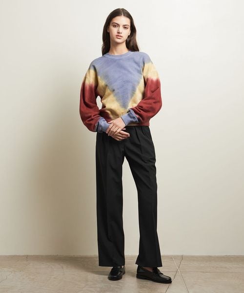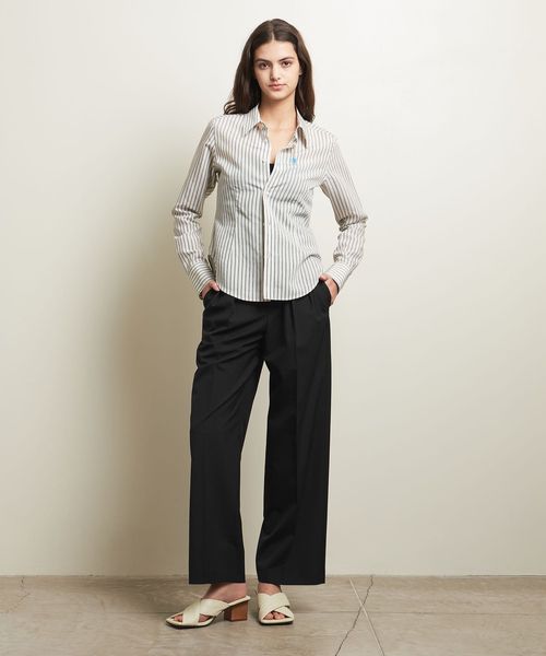 シルエットがきれいに出る張り感が特徴で、腰履き&裾をシューズにバウンドさせルーズに着崩すのも◎。
