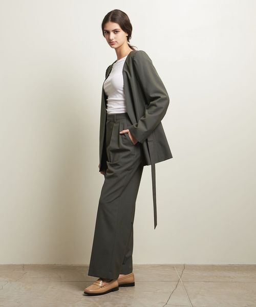 2タックのディテールがマニッシュなムードを演出し、大人のスタイルへと導いてくれます。