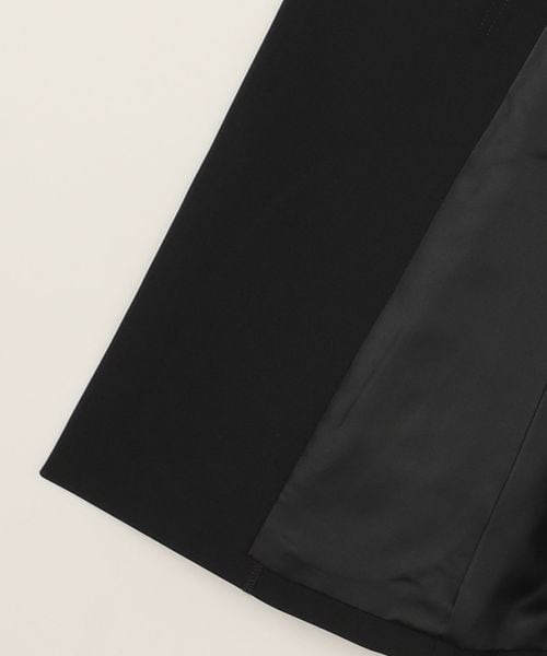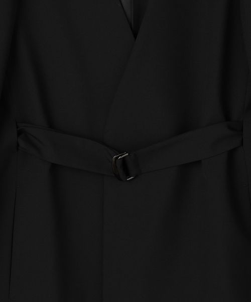 サイドにはベルトループ代わりの穴があり、そこから共地ベルトを通す仕様でバックスタイルのすっきり見えを叶えます。