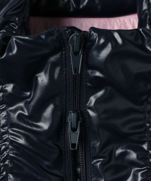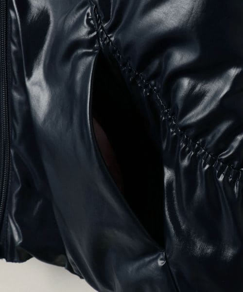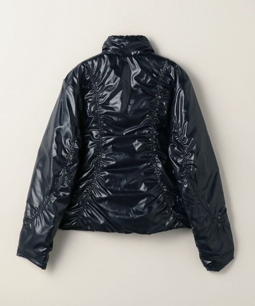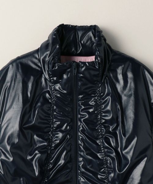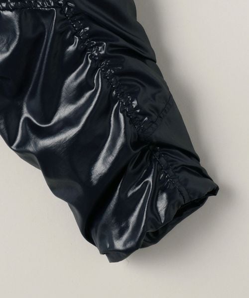 シンプルなスタンドカラー&全体に施したシャーリングディテールが、ややガーリーなムードを演出します。