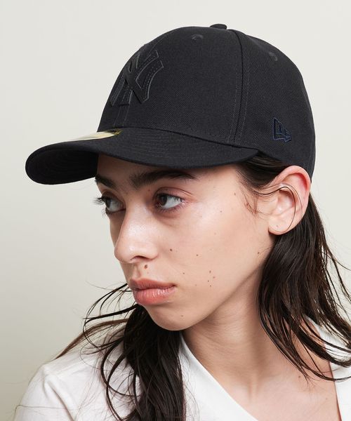 着用した際のシルエットがきれいに見えるように、バック部分はアジャスターのないモデル<NEW ERA>「LOW PROFILE 59FIFTY」を採用。