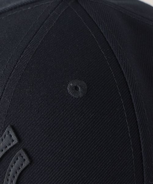 “New York Yankees”のロゴをボディと同色のネイビーのレザーパッチにすることで落ち着いた大人な雰囲気纏うデザインに仕上げた別注キャップ。