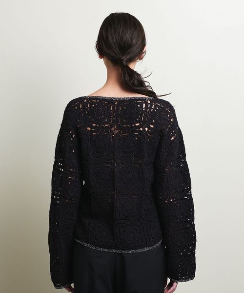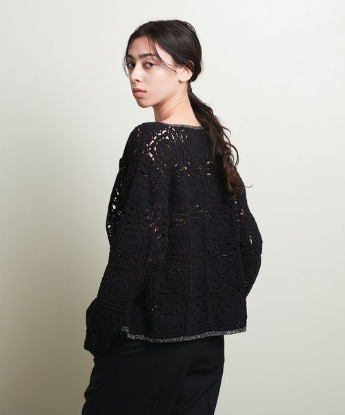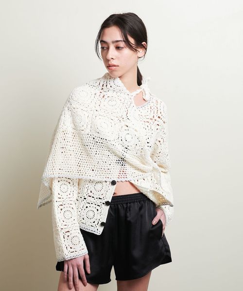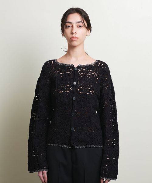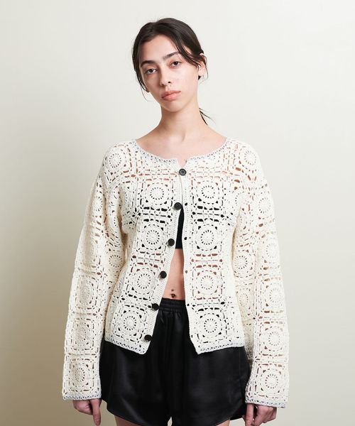 ノスタルジックな雰囲気のクロシェ編みニットカーディガン。
