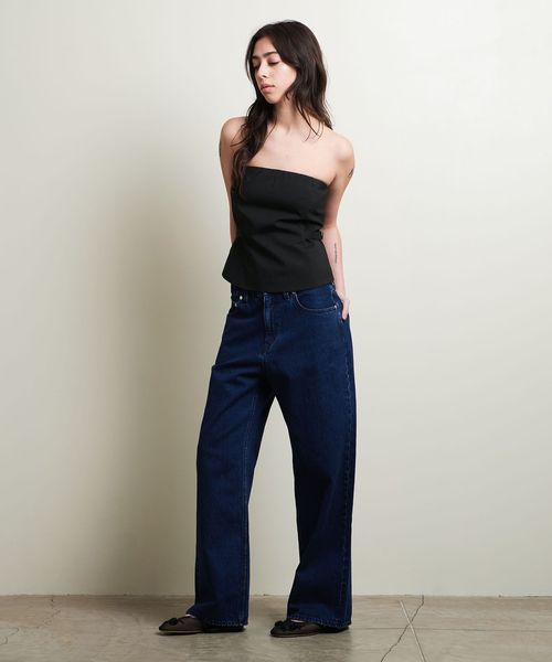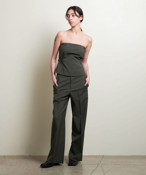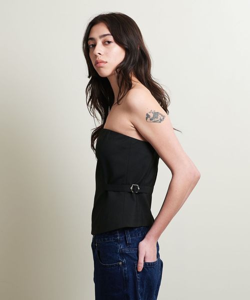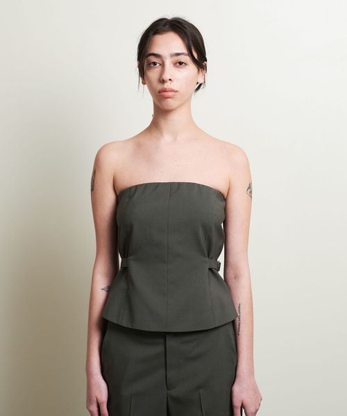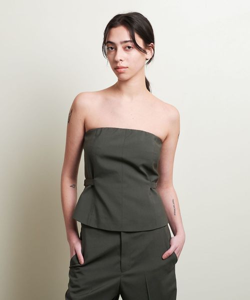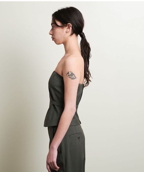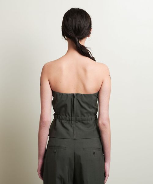 メンズライクなスーツ地を使用したソリッドなデザインのビスチェ。