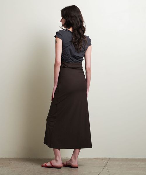 バストからヒップまではコンパクトなシルエットで、裾にかけて広がるAラインがボディラインのきれい見えを叶える一着です。
