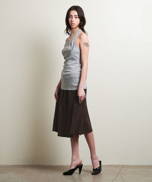 ヘルシーに一枚着ではもちろん、薄手のタンクトップやTシャツなどをレイヤードさせたスタイルもおすすめ。