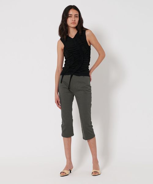 ノスタルジーなムード纏うスリムシルエットのカプリパンツ。