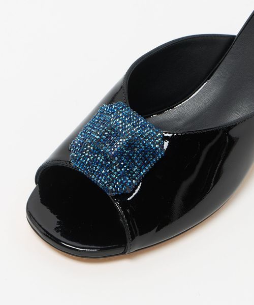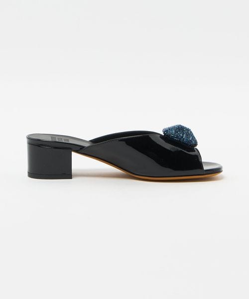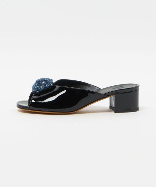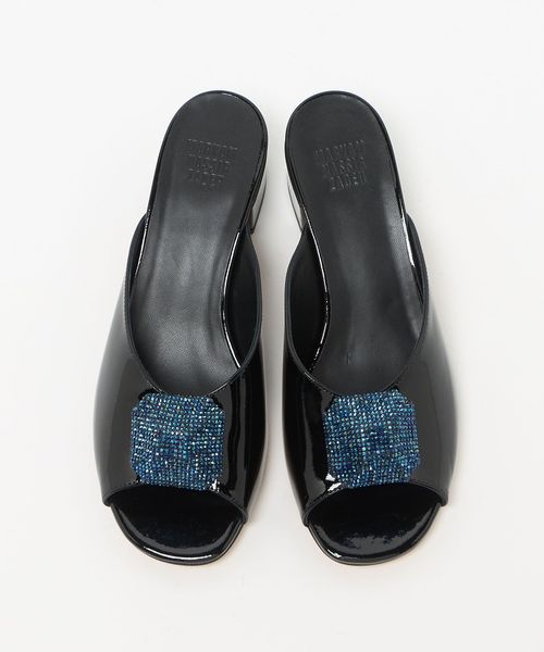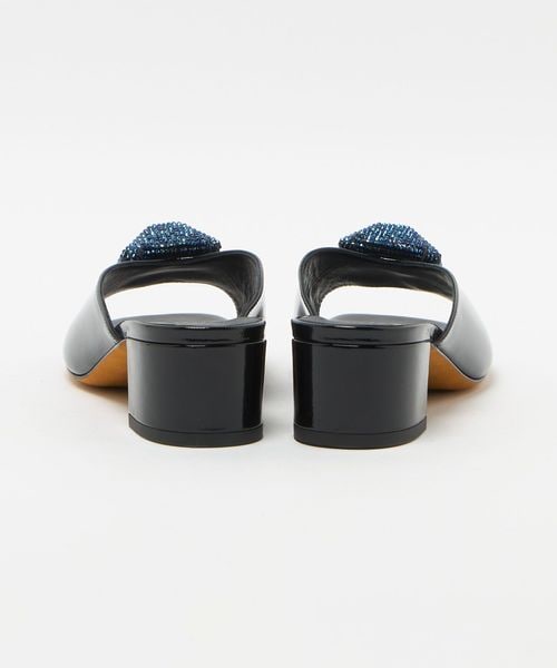 ブルートーンのオブジェが映えるスライダーサンダル。