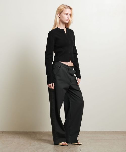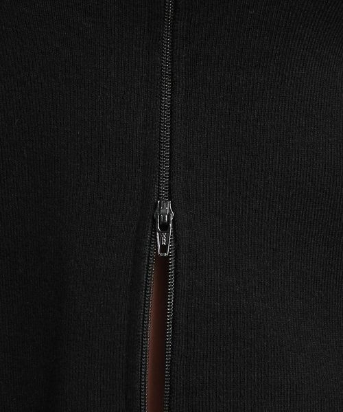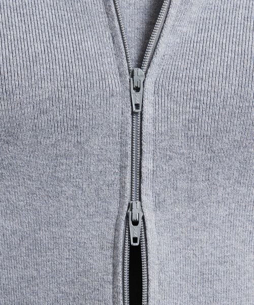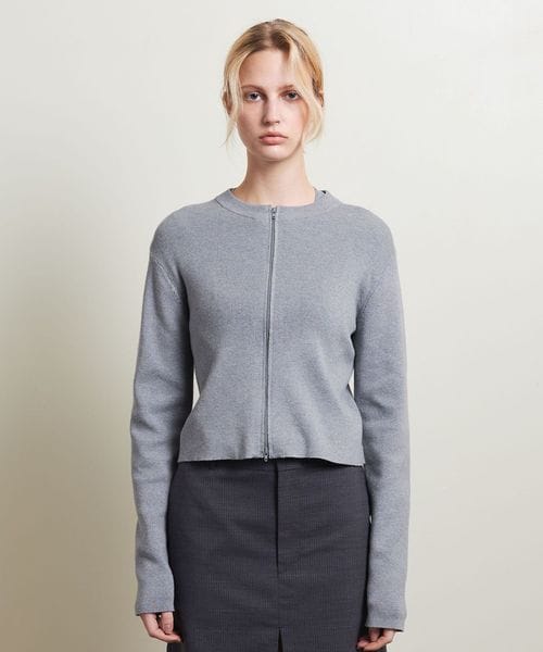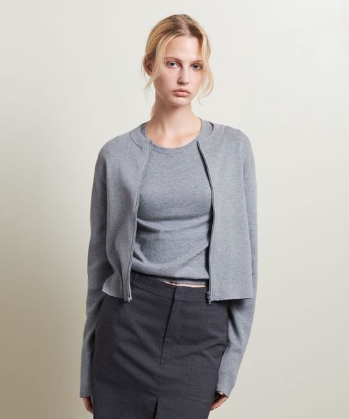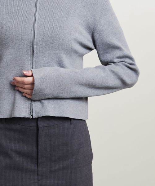 カーディガンとしてはもちろん、一枚着風にファスナーを閉めてジャケットやブルゾンのインナーとしてモードに着こなすのもおすすめです。