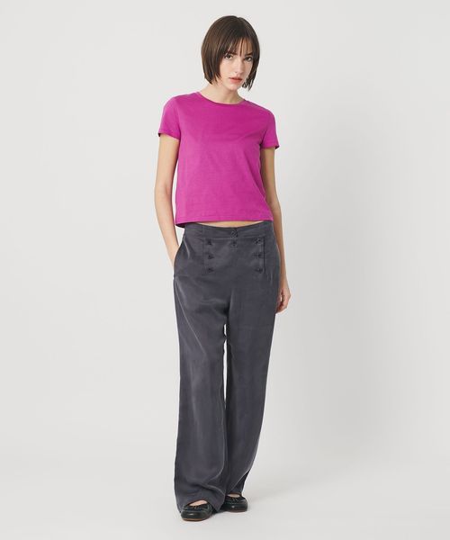 コンパクトなサイズ感を活かして、ワイドパンツなどのボリューミーなボトムと合わせメリハリのある着こなしがおすすめです。