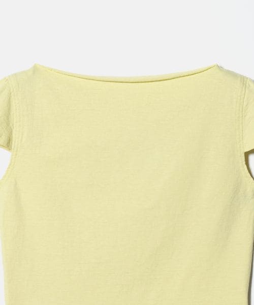 ワイドでやや詰まったネックラインは、あえてカットオフ仕様にすることで、ラフさをプラス。