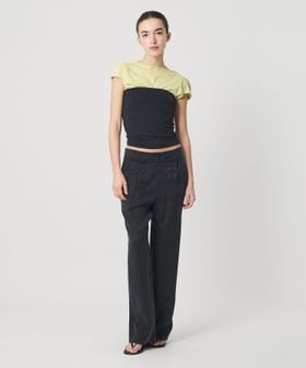 ジャケットやブルゾンのインナーとしてはもちろん、ビスチェとのレイヤードにも活躍し、着回し力の高い一着です。