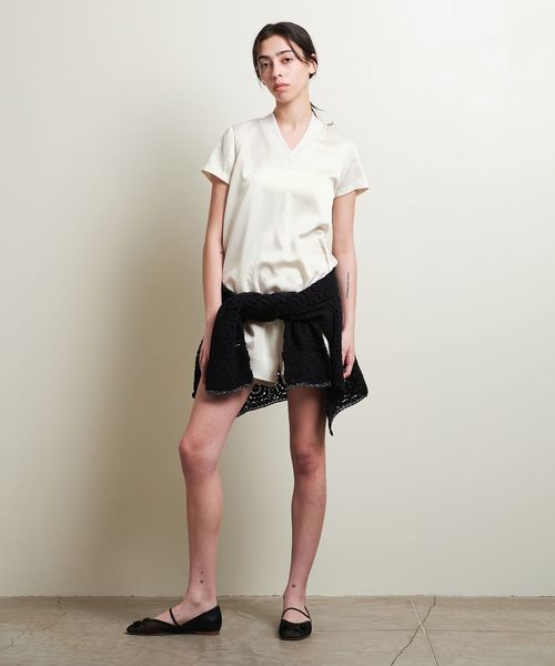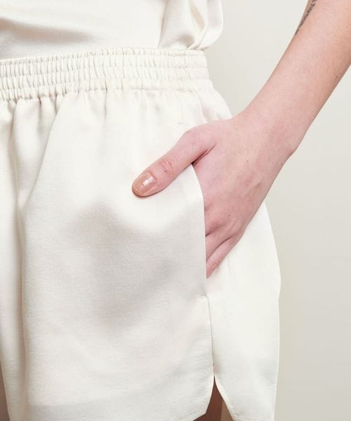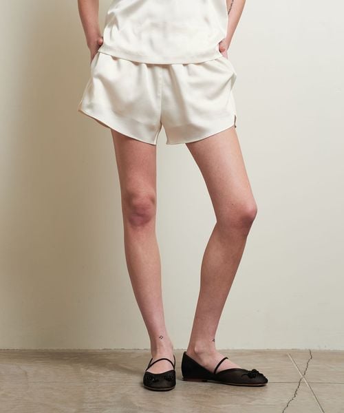 普段の装いに上品さとスタイリッシュさをプラスするサテンショートパンツ