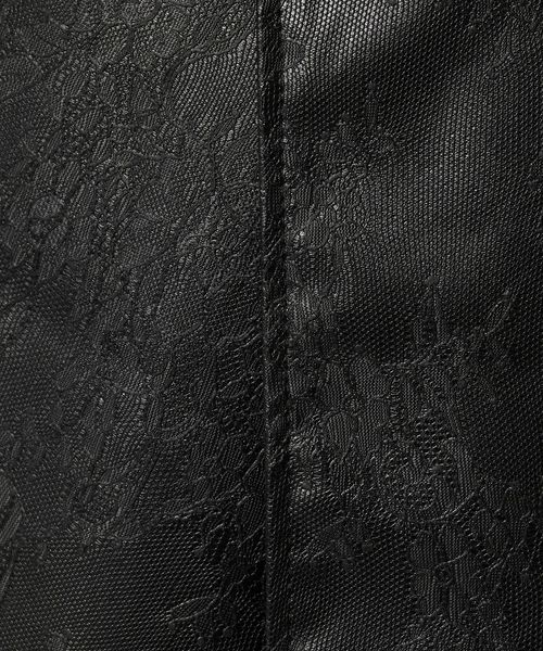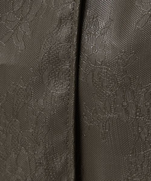 繊細なレース柄をエンボスさせた表情のある生地と、裏側はシンプルなレザーライクな素材を使用。