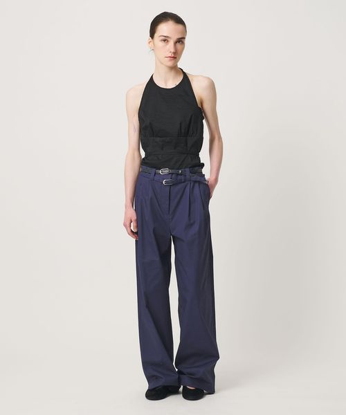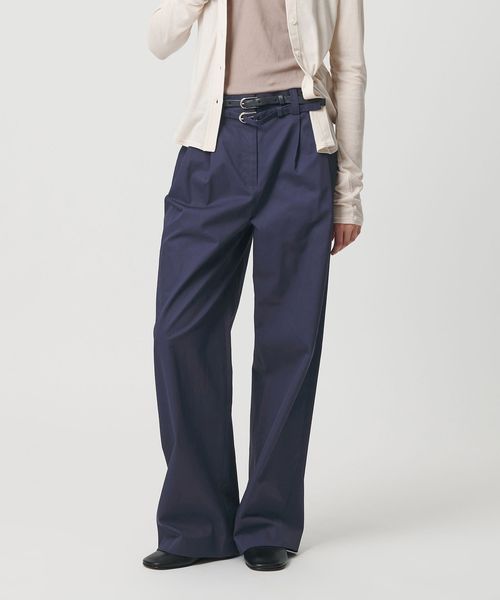 ナローベルトの重ね付けデザインがポイントのストレートパンツ。