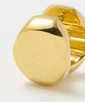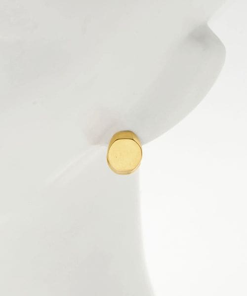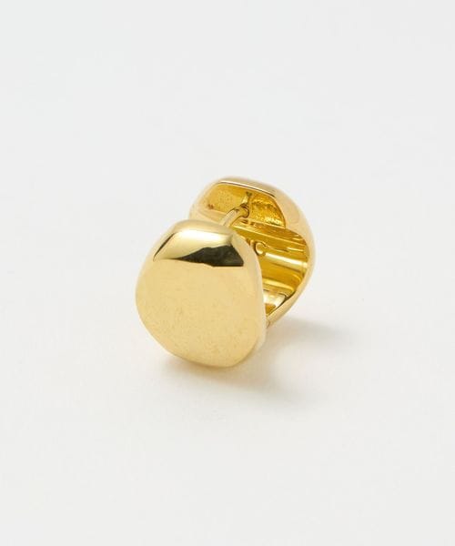 正面からはプレートのようにフラットに見えるデザインがユニークなフープピアス。